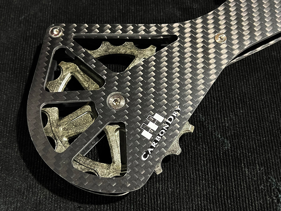 1.使用AURUM+CF30新一代樹脂(超級工程塑料)製造的CDJ後撥大導輪。它具有與鋁合金匹敵的高強度,但重量只有鋁合金的一半左右,超輕量。不但具有出色的抗滑動性,還顯著提高了靜音性能。
